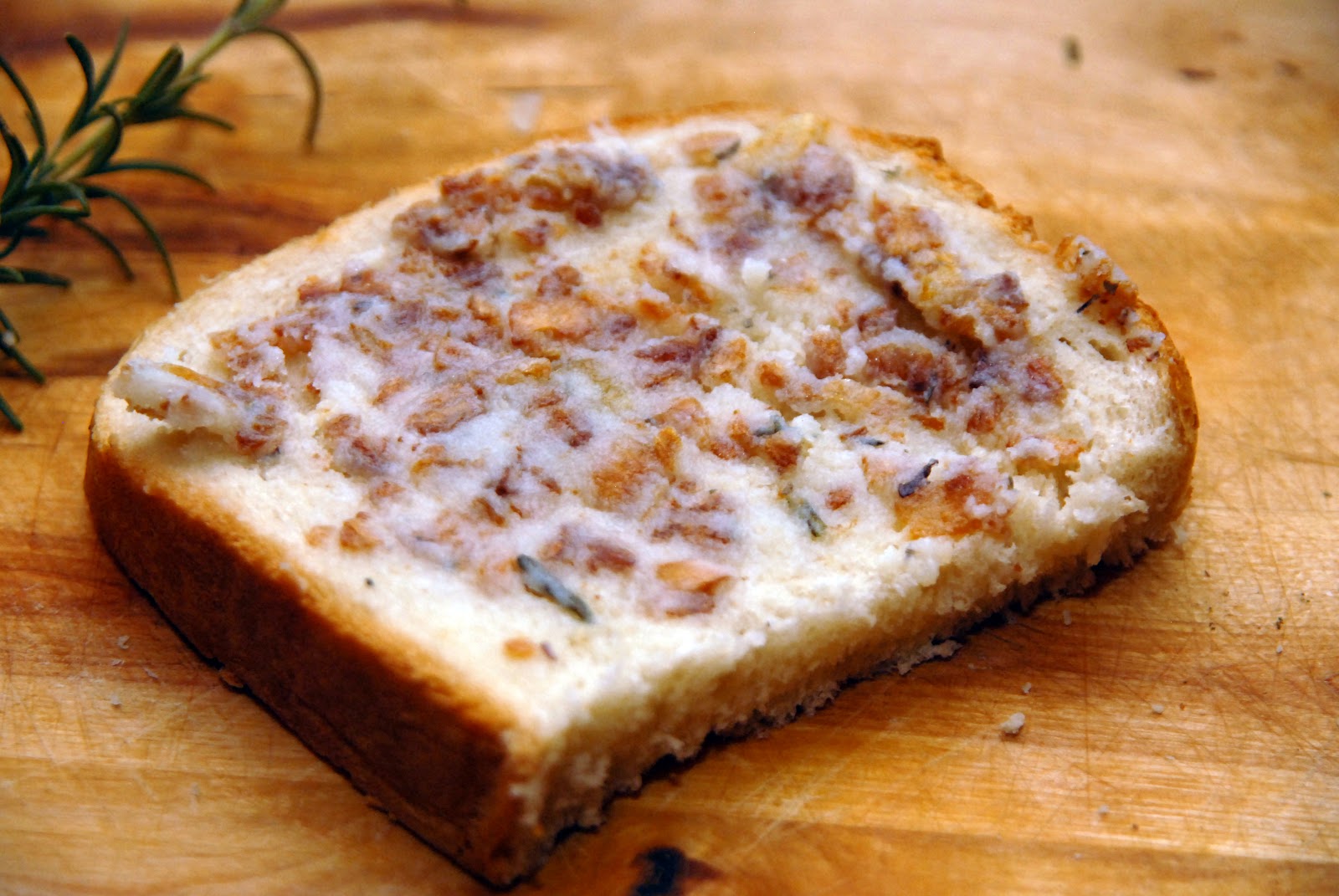 Szépnek nem szép, viszont nagyon finom. A hagyma ropogós, ízében a rozmaring dominál, ami nagyon különlegesség teszi, merthogy eléggé kevesen szocializálódtunk rozmaringos zsíros kenyéren. Jó étvágyat!