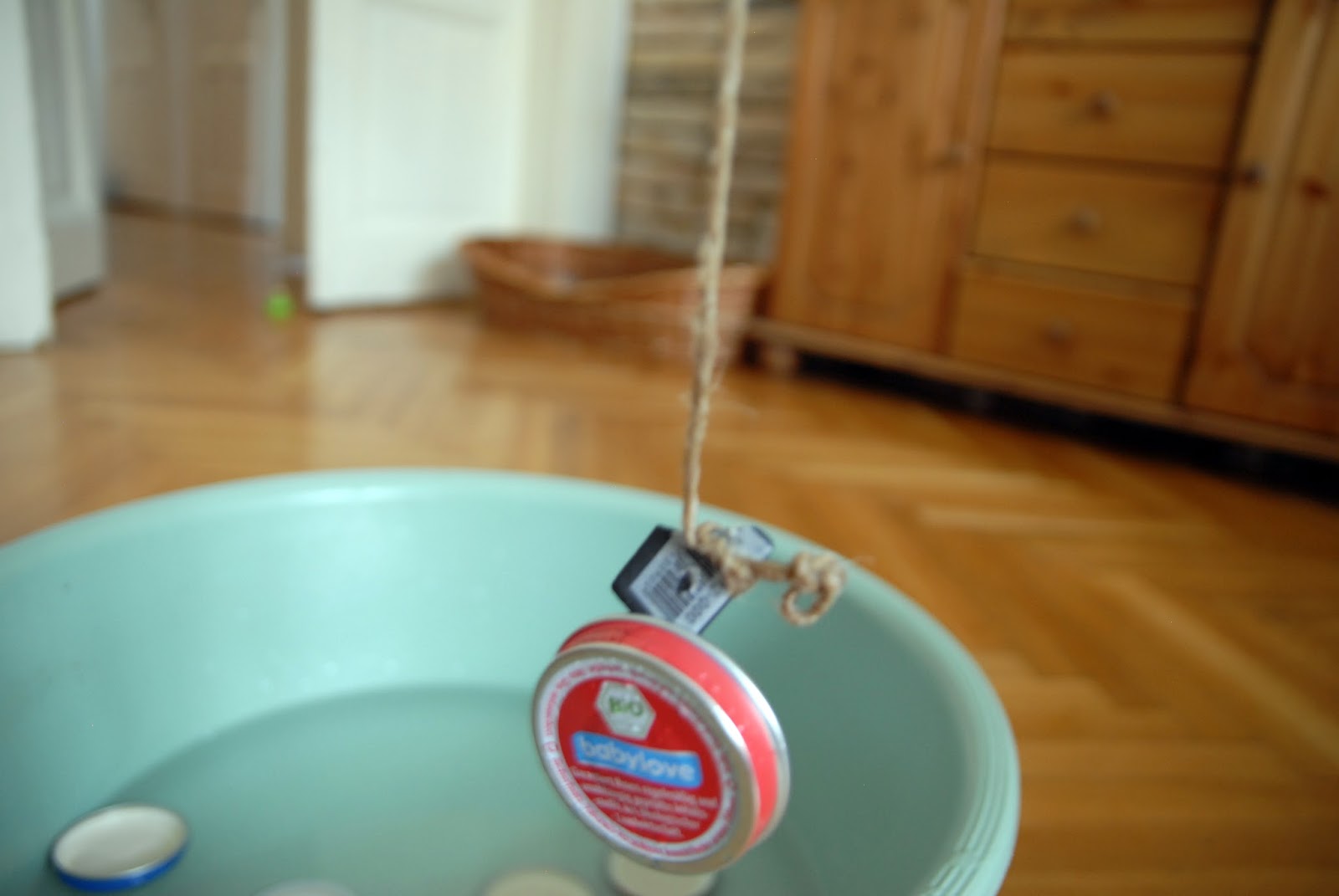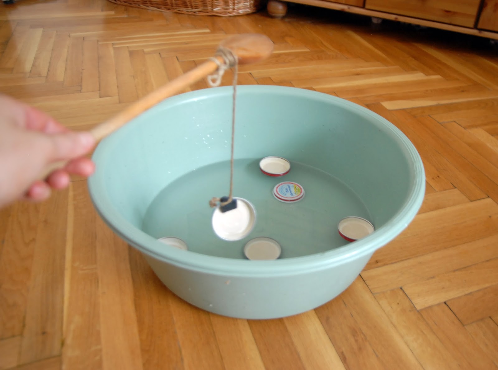 És akkor maga a játék: az elkészült pom-pomokat dobjuk v