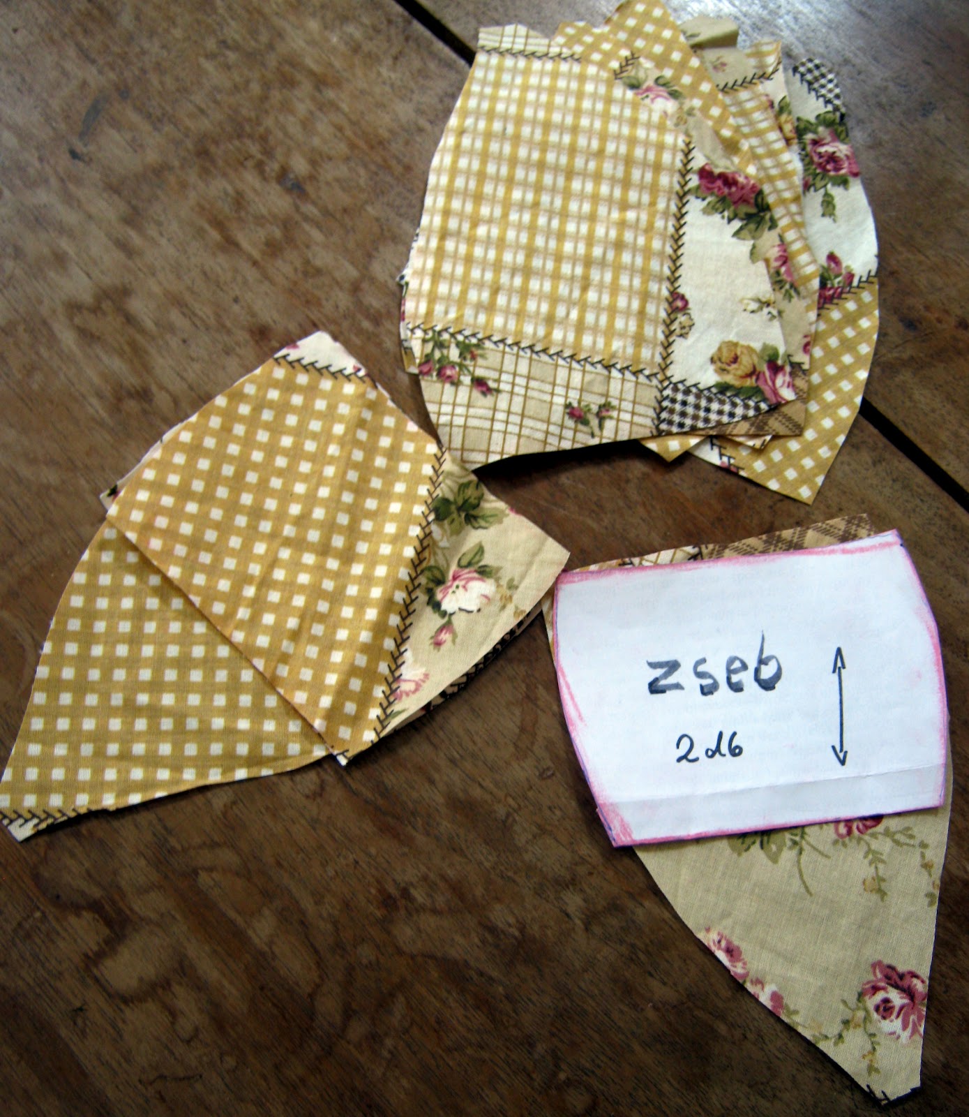 A fülekre a zsebet úgy tudod kiszabni, ha a szabásmintát kettéhajtod, és a fölső végét használod mintának: